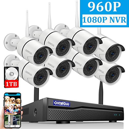 【2019 Newest】OHWOAI Security Camera System Wireless, 8CH 1080P NVR,8Pcs 960P HD Outdoor/ Indoor IP Cameras,Home CCTV Surveillance System(1TB Hard Drive)Waterproof,Remote Access,Plug&Play,Night Vision.
