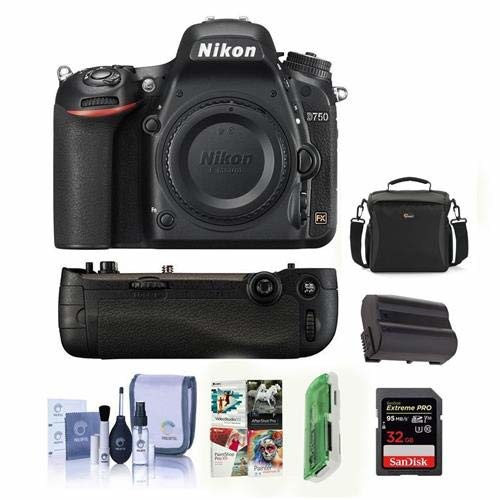 • Nikon D750 FX-Format Digital SLR Body Only Camera – Bundle with Camera Bag, 32GB Class 10 SDHC Card, Nikon MB-D16 Multi Power Battery Pack, Spare Battery, Cleaning Kit, Card Reader, Software Package