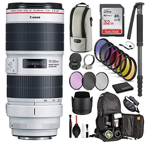 • Canon EF 70-200mm f/2.8L is III USM Lens USA (3044C002) with Professional Bundle Package Deal Kit for Canon EOS Includes: DSLR Sling Backpack, 9PC Filter Kit, Sandisk 32GB SD + More