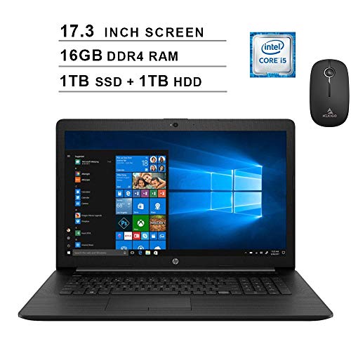 • 2020 Newest HP Pavilion 17.3 Inch Laptop (Intel Quad-Core i5-8265U up to 3.9 GHz, 16GB RAM, 1TB SSD (Boot) + 1TB HDD, Webcam, DVD, Windows 10) (Black) + NexiGo Wireless Mouse Bundle