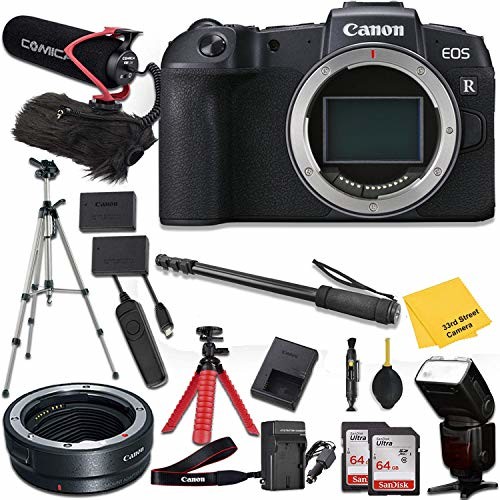 • Canon EOS RP Mirrorless Digital Camera (Body Only) + Mount Adapter EF-EOS R + Pro Accessory kit (Microphone w/Windshield, Tripods, Flashlight, Memory Cards and More)
