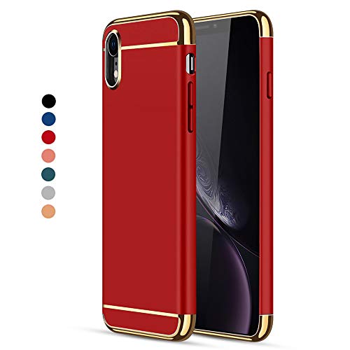 • CROSYMX iPhone XR Case, 3 in 1 Ultra Thin and Slim Hard Case Coated Non Slip Matte Surface with Electroplate Frame for Apple iPhone XR (6.1”)(2018) – Red