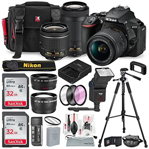 • Nikon D5600 DSLR Camera with NIKKOR 18-55mm + 70-300mm Lenses W/2 x 32GB Memory Card + Digital Slave Flash + Filters, Telephoto & Wideangle Lens, Xpix Lens Accessories with Deluxe Bundle